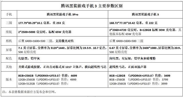 为了便利咱们对黑鲨3和黑鲨3Pro有一个更深化的了解,亓纪将这两款手机的首要硬件差异做了一个表格共享给咱们,让咱们能够对这两款手机的首要差异做到一望而知,期望咱们咱们能够喜爱。
