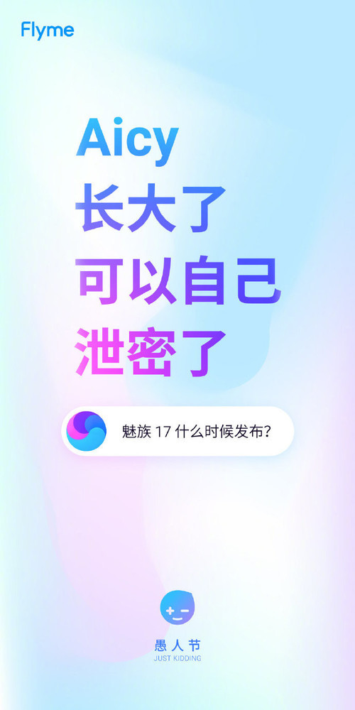 4月1日,@Flyme 官微发微博称,“Aicy长大了,能够自己泄密了。”放出的海报显现,只要对Aicy说“魅族17何时发布”,Aicy就会答复。虽然是愚人节,这条信息的可信程度并不高。可是仍是有许多网友都去试了,成果得到以下答复。